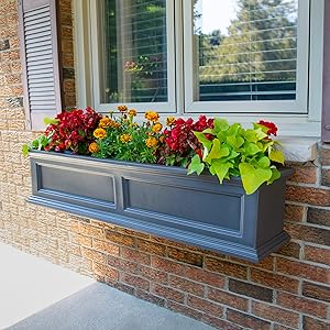 Amazon Com Mayne Fairfield 4ft Window Box Black 48in L X 11in W X 11in H Polyethylene Built In Water Reservoir 5823 B Plant Window Boxes Patio Lawn Garden